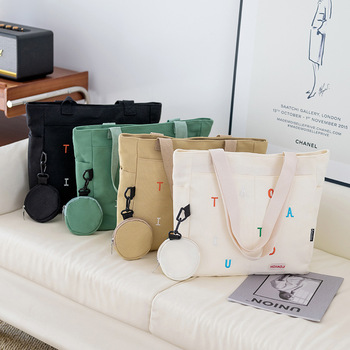 Bolso de lona de gran capacidad, bolso con letras bordadas a la moda para mujer, bolso de hombro para estudiantes
