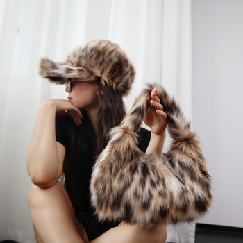 Bolso de felpa con estampado de leopardo para mujer, Bolsos De Mujer de felpa esponjosa de estilo retro, bolsos de piel sintética de leopardo