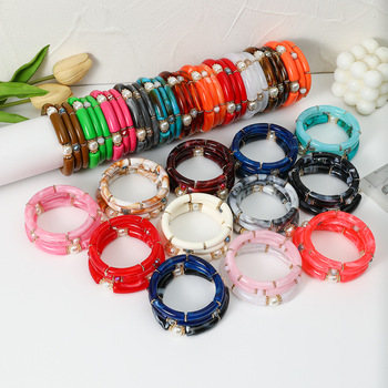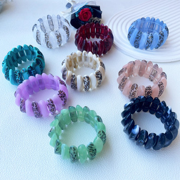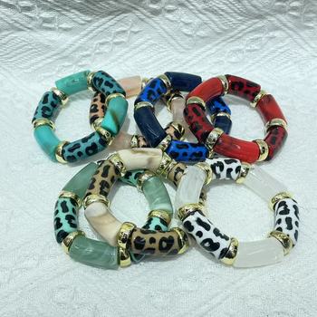 Gold Plated Septum Acrylic Tube Beaded Bracelets New Leopard-Print Curved Tube Elasticity Acrylic Bracelet