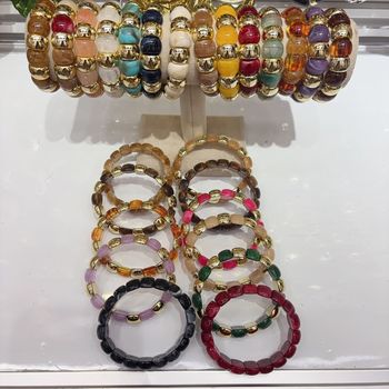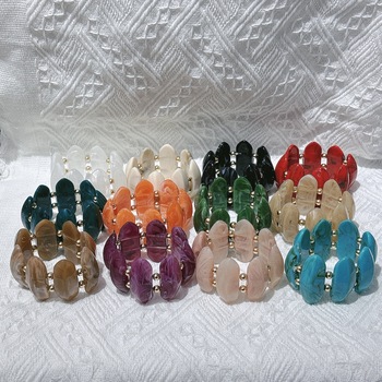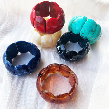 Retro Romantic Trendy Exaggerated Blended Oval Acrylic Elastic Bracelet, European and American Retro Exaggerated Bracelet