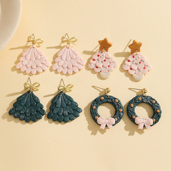 עגילי עץ חג המולד פולימר בעבודת יד עגיל softrop חמודים עגילי עץ חג המולד