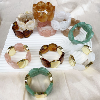 สร้อยข้อมืออะคริลิคย้อมสีแบบย้อนยุคสำหรับผู้หญิงสร้อยข้อมือแบบยางยืดชุบทอง18K สร้อยข้อมือแบบหนาและหนา