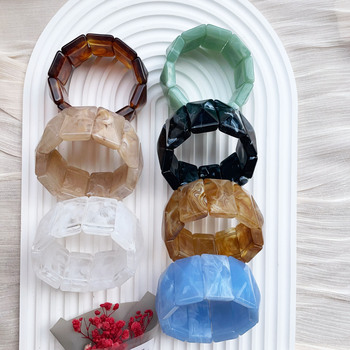 กำไลข้อมืออะคริลิคทรงสี่เหลี่ยมสำหรับผู้หญิงสร้อยข้อมือทรงเรขาคณิตแบบลำลองทำจากยางเรซินสีสันแปลกใหม่