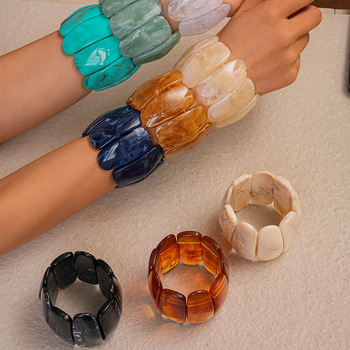 Dairesel eklenmiş elastik halat abartılı yuvarlak kalın akrilik bilezik Retro geometrik elastik halat reçine bilezikler