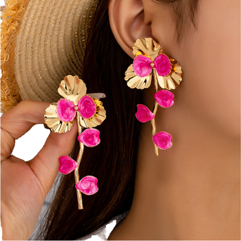 Bán Buôn Thời Trang Của Phụ Nữ Vàng Đỏ Mạ Kim Loại Thả Bông Tai Phóng Đại Dầu Nhỏ Giọt Hoa Thiết Kế Bông Tai