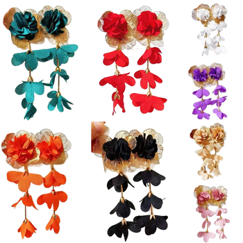 Handmade Orange Flower tua Bông tai đầy màu sắc rỗng vải thiết kế khu nghỉ mát phong cách tai đồ trang sức thả bông tai